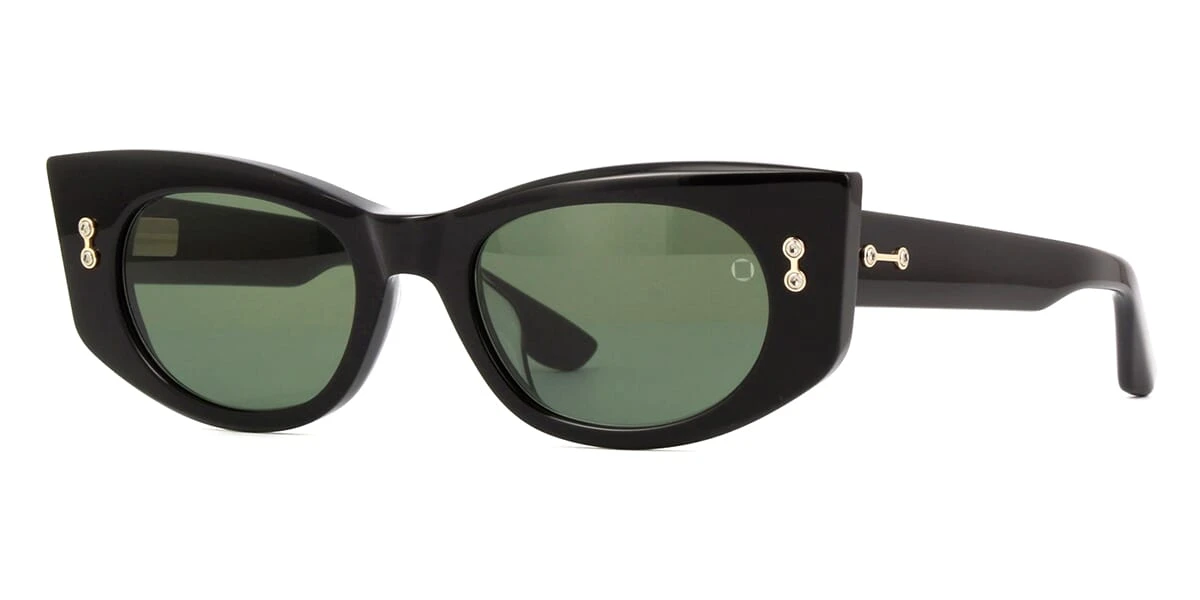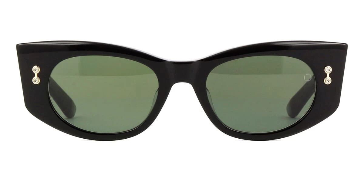 This cat eye Akoni Aquila AKS 103A sunglass comes in a solid black frame with green lenses.