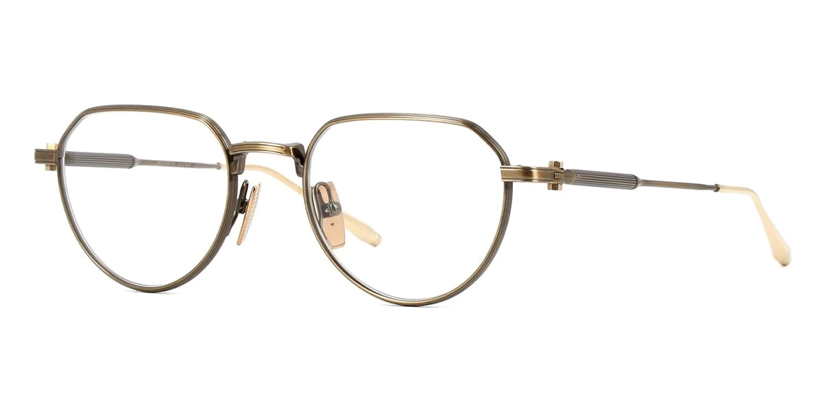 This round Akoni optical comes in a antique 12k gold with brushed 12k gold frame.