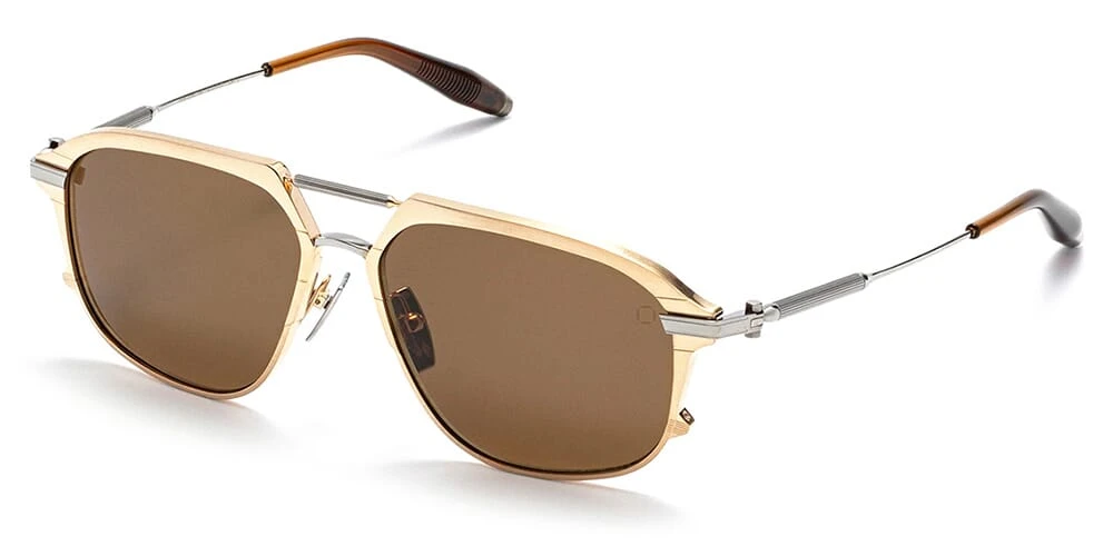 This aviator Akoni sunglass comes in a gold with black palladium frame with dark brown lenses.