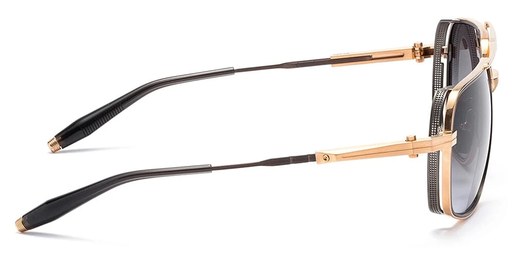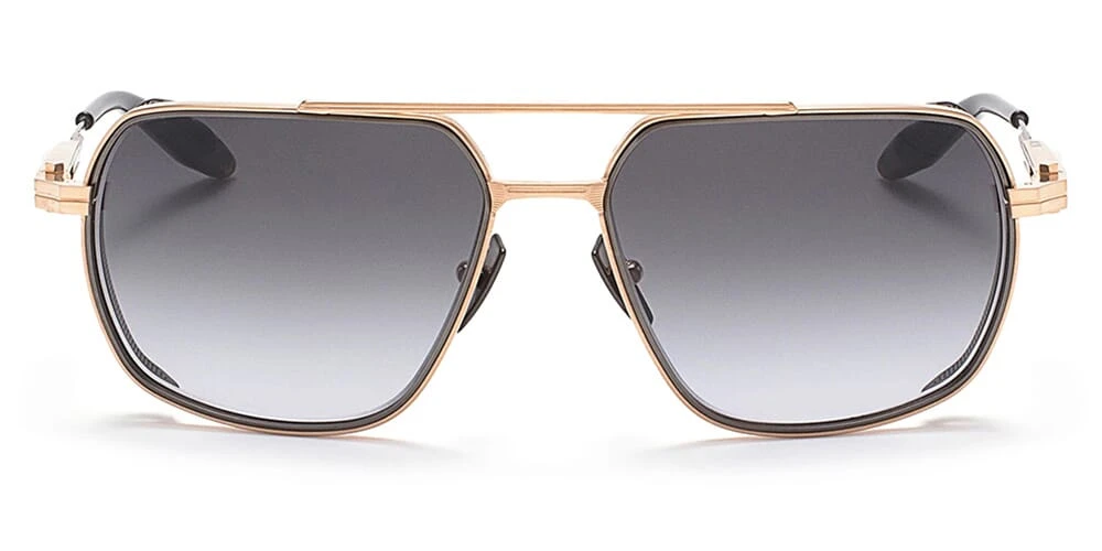 This aviator Akoni sunglass comes in a light gold with matte black frame with grey lenses.
