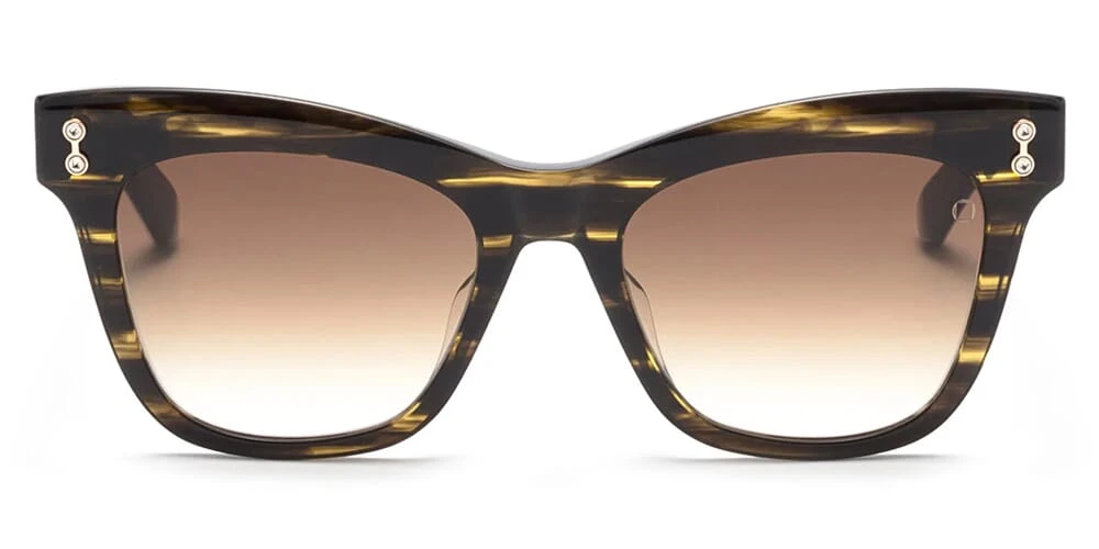 This cat eye Akoni sunglass comes in a brown with yellow frame with dark brown gradient lenses.