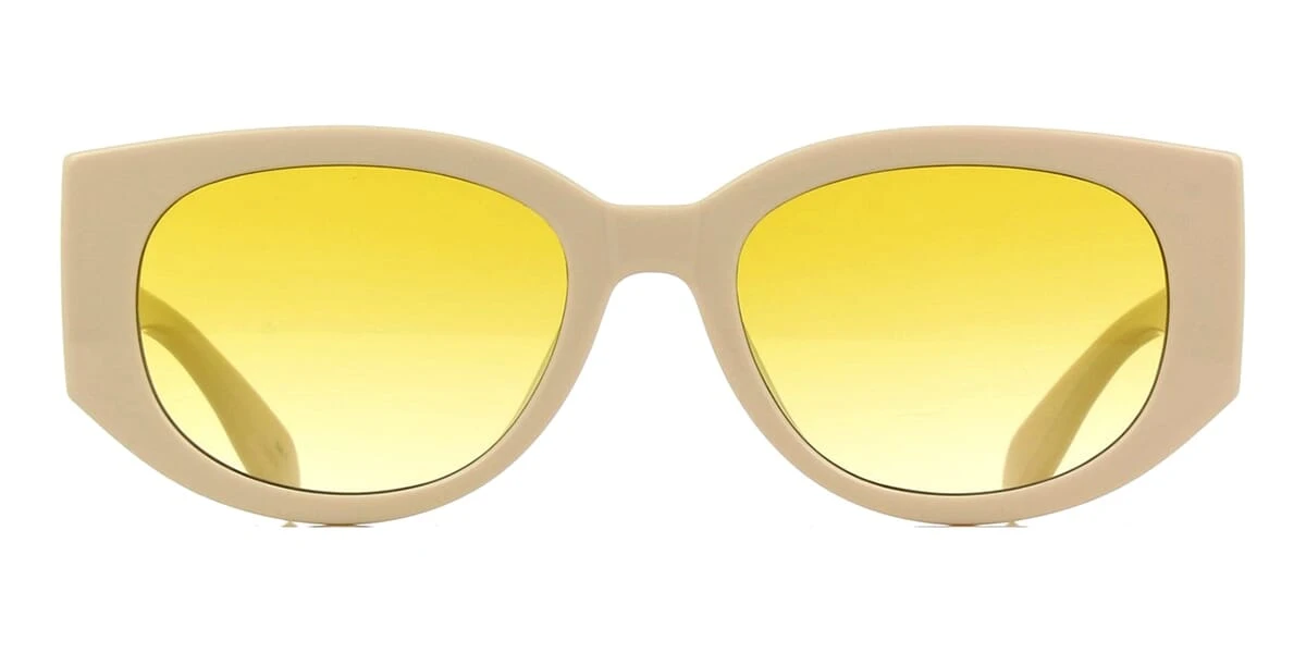 This round Alexander McQueen sunglass comes in a white cream frame with yellow gradient lenses.
