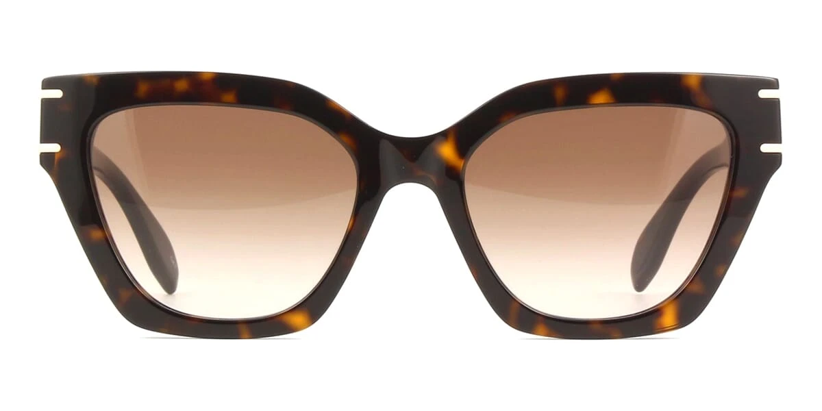 This cat eye Alexander McQueen sunglass comes in a shiny spotted dark havana frame with brown gradient lenses.