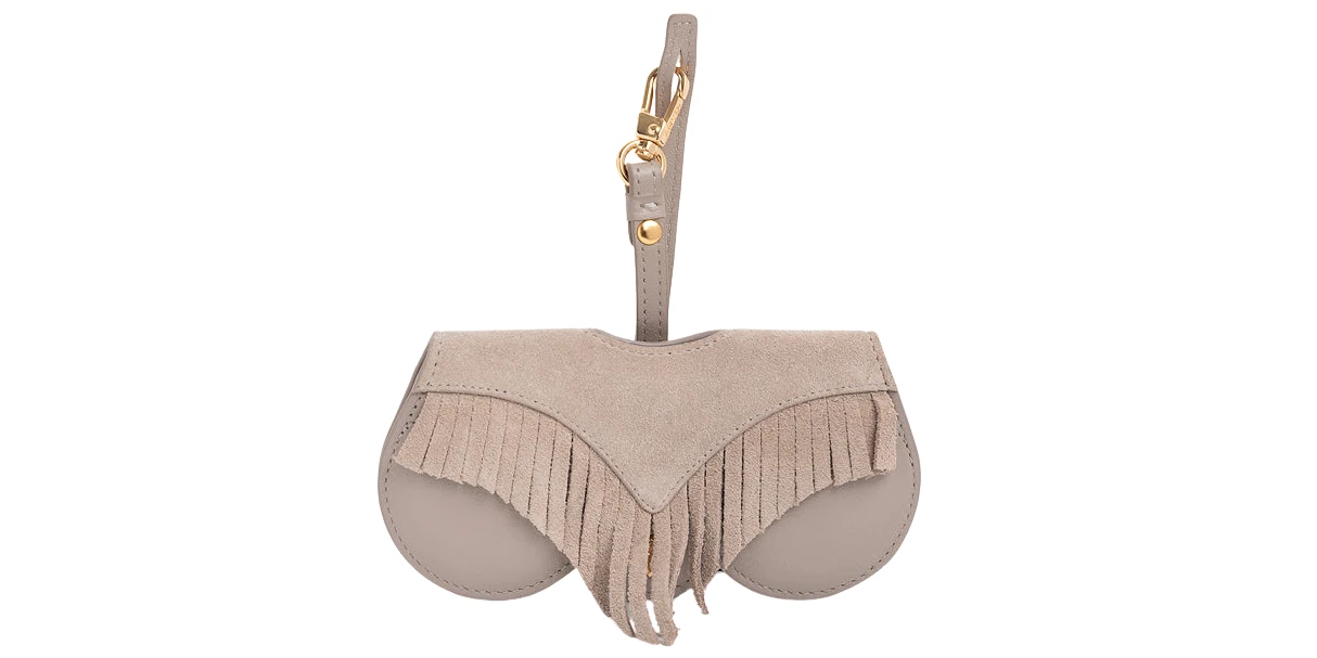 Gently swinging fringes made of soft suede make us think of Coachella and the popular boho style. At the same time, the SunCover remains easy to combine and timeless thanks to its light colour. With the leather hanger, it can be clipped to any bag or belt. Softly padded microfibre protects the lenses from scratches and dust. Gold-plated elements round off the SunCover and provide a noble finish.