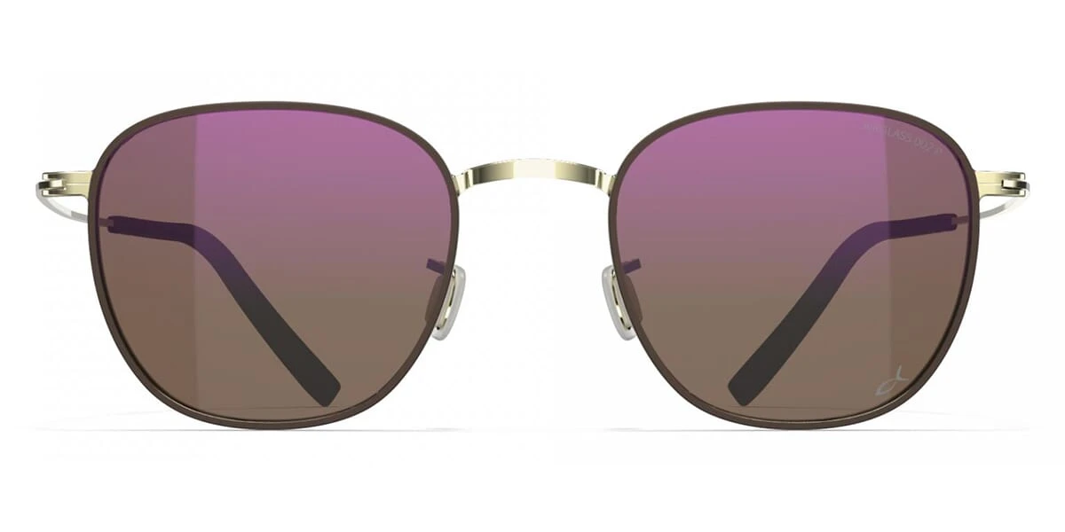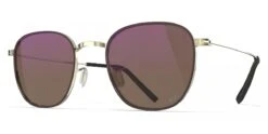 This square Blackfin sunglass comes in a light gold with brown frame with brown with fucia flash mirror lenses.