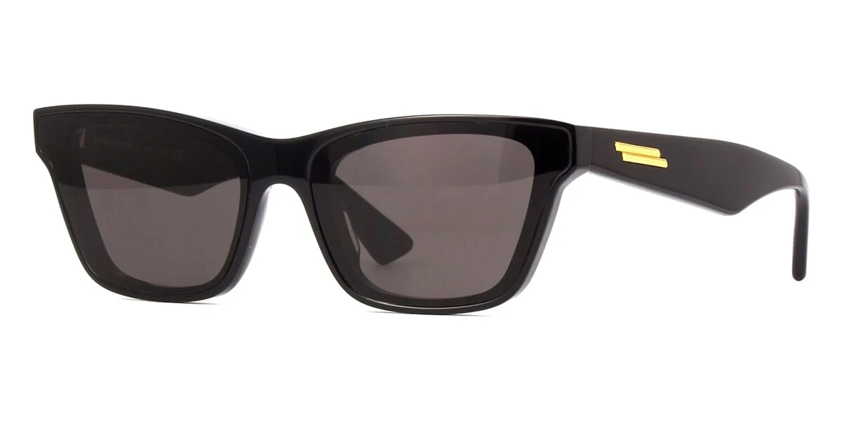 This cat eye Bottega Veneta sunglass comes in a black frame with grey smoke lenses.