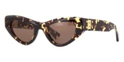 This cat eye Bottega Veneta sunglass comes in a havana frame with brown lenses.
