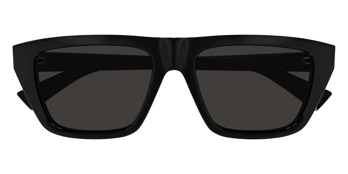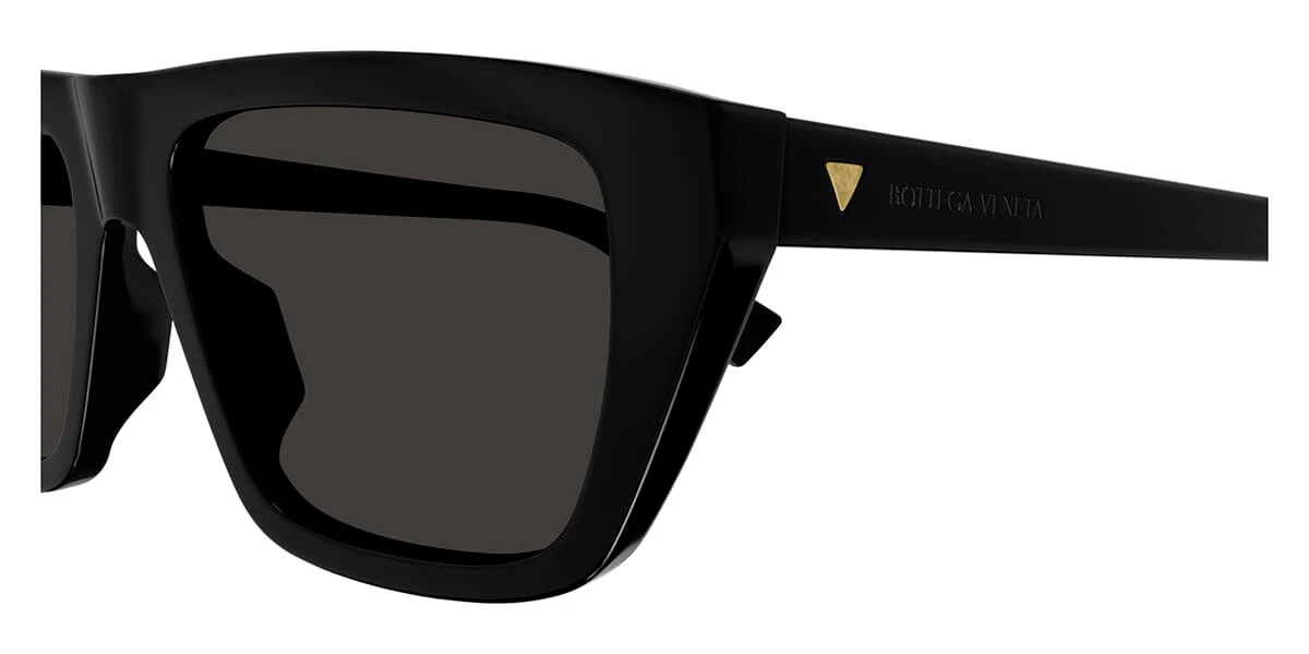 This square Bottega Veneta sunglass comes in a black frame with grey lenses.
