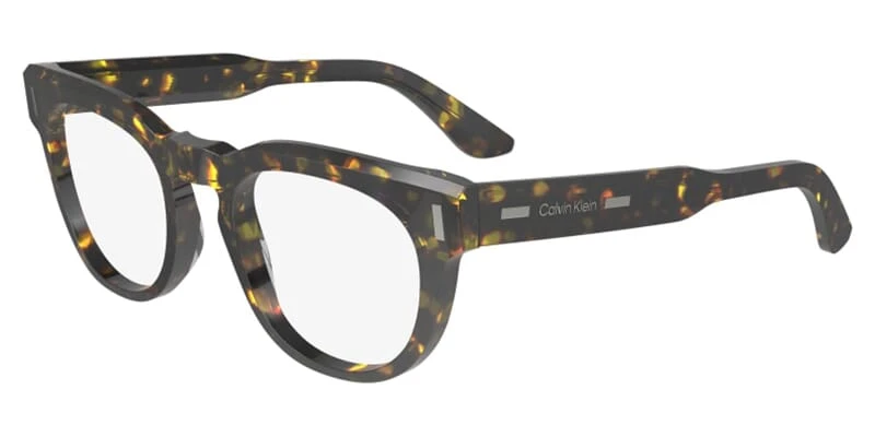 This round Calvin Klein optical comes in a brown and blue with havana frame.