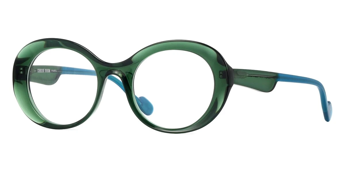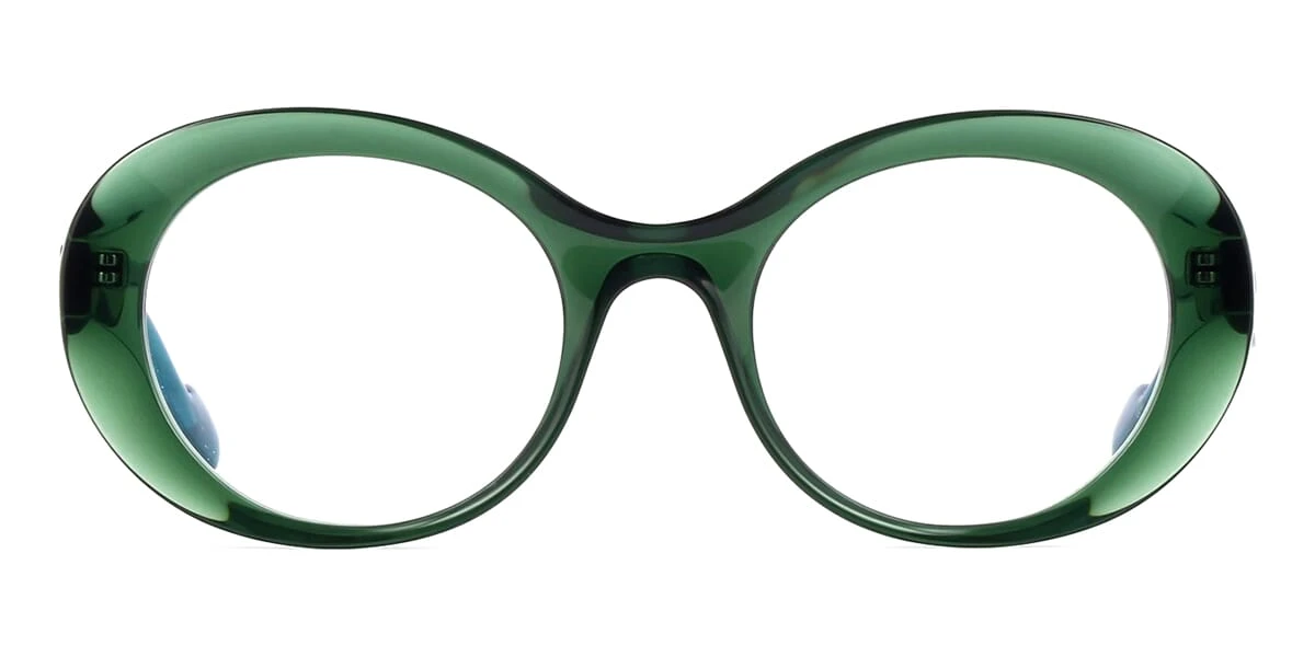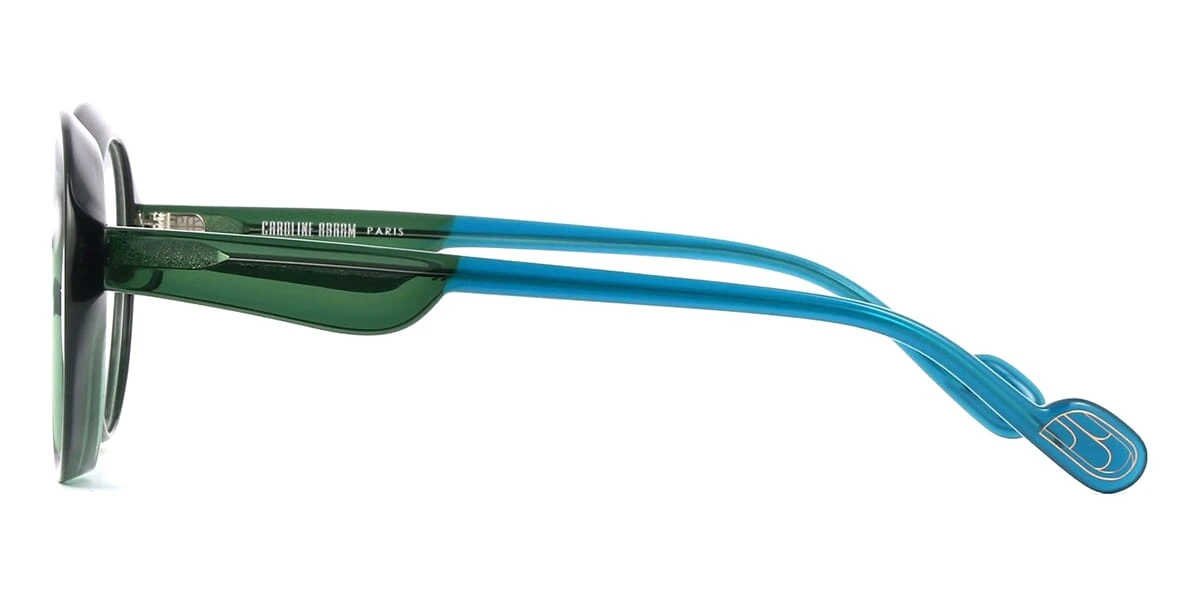This round Caroline Abram optical comes in a shiny dark green frame.