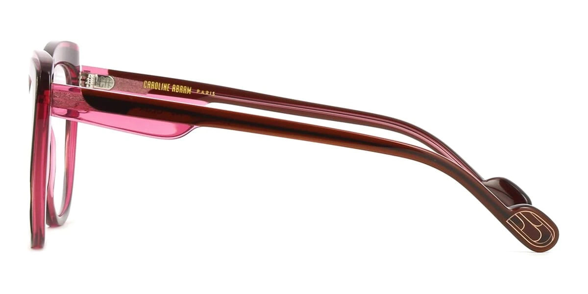 This cat eye Caroline Abram optical comes in a shiny brown and red frame.