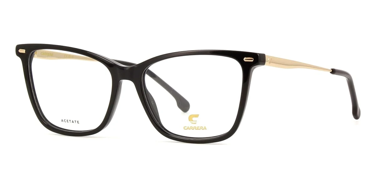 This cat eye Carrera optical comes in a shiny black frame.