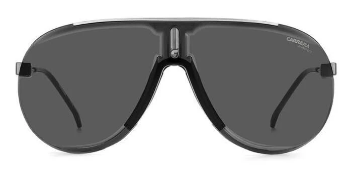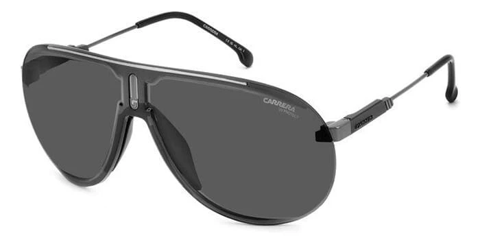 This aviator Carrera sunglass comes in a dark ruthenium black frame with dark grey lenses.