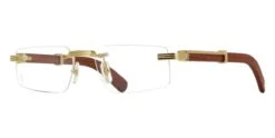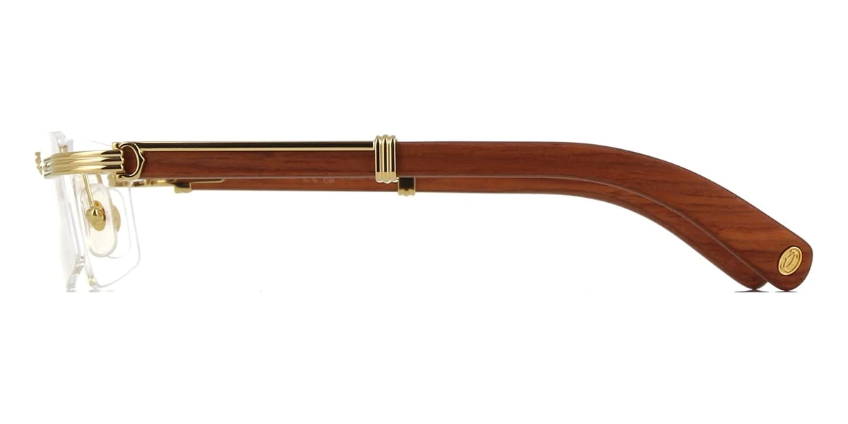 This rectangular Cartier optical comes in a shiny gold brown real wood frame.