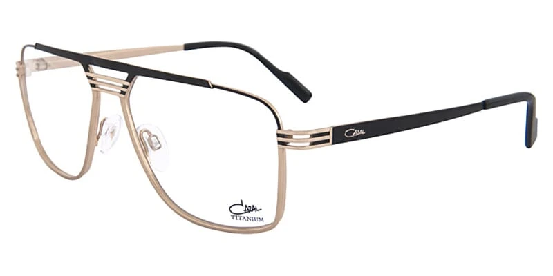 This square Cazal optical comes in a black gold frame.