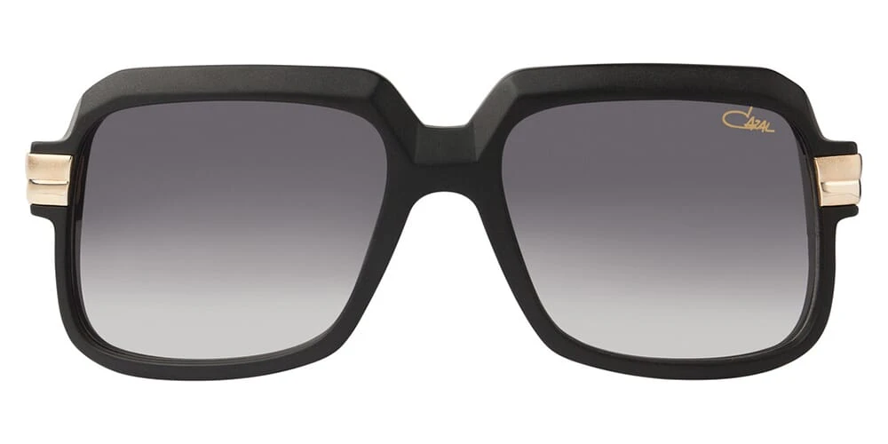 This square Cazal sunglass comes in a black matt frame with grey lenses.