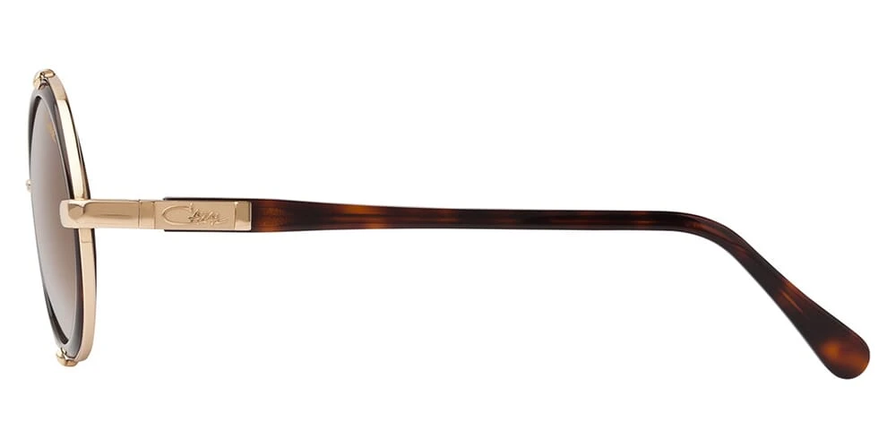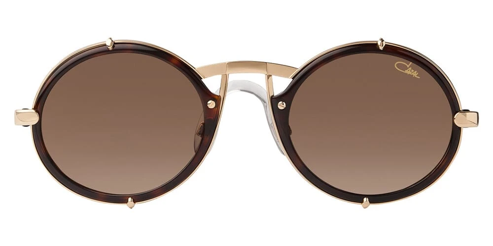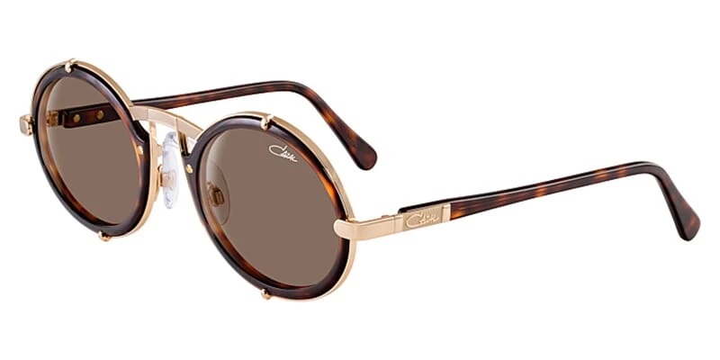 This round Cazal sunglass comes in a tortoise frame with grey uni lenses.