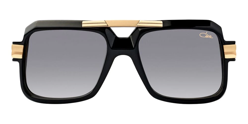 This square Cazal Legends sunglass comes in a black frame with grey gradient lenses.