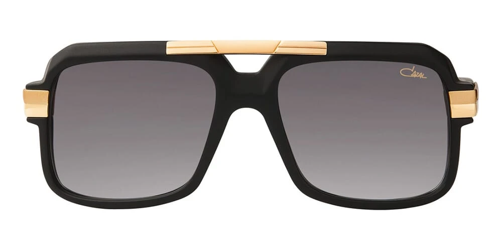 This square Cazal sunglass comes in a black mate frame with grey gradient lenses.