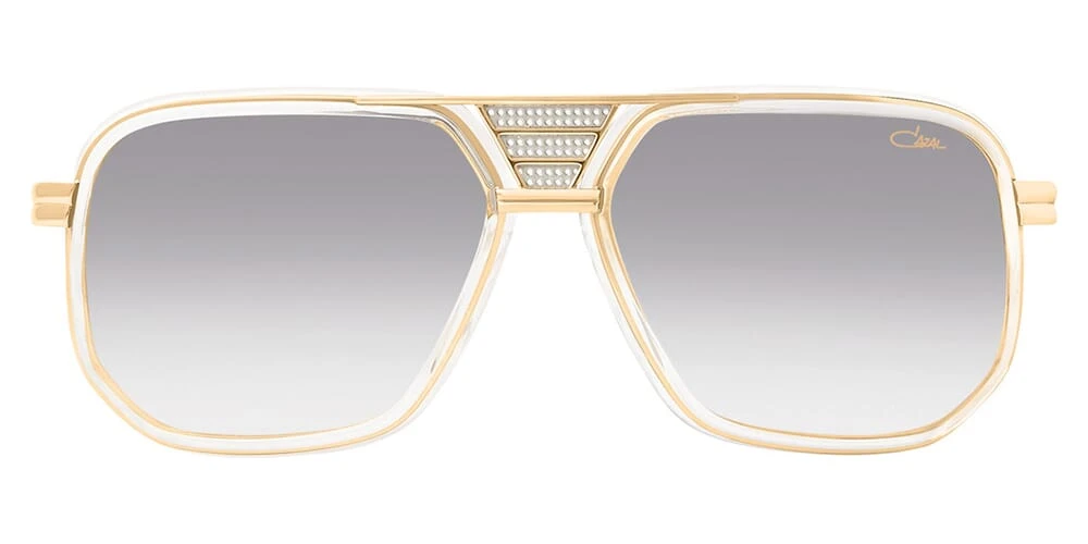 This square Cazal sunglass comes in a crystal bicolour frame with grey gradient lenses.