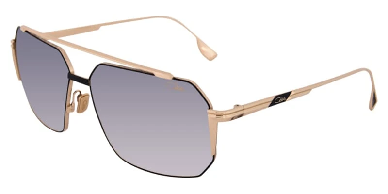 This square Cazal sunglass comes in a black and gold frame with grey gradient ar coated lenses.