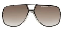 This square Cazal sunglass comes in a black frame with brown gradient lenses.