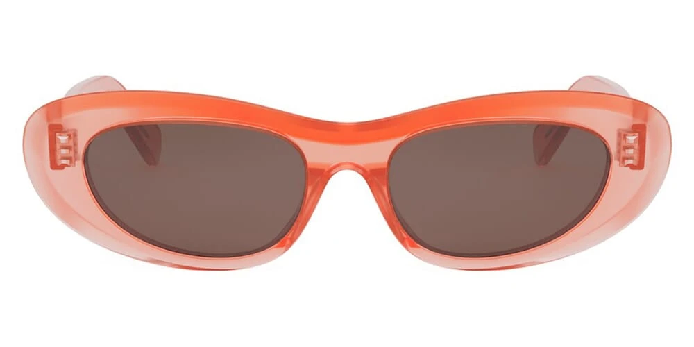 This cat eye Celine sunglass comes in a shiny crystal orange frame with brown lenses.