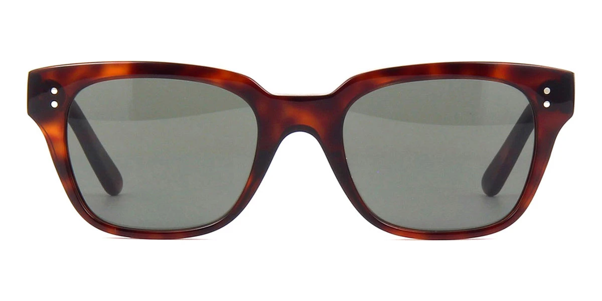 This rectangular Celine sunglass comes in a dark havana frame with green lenses.