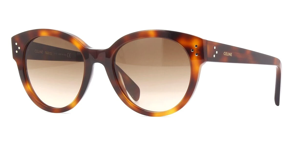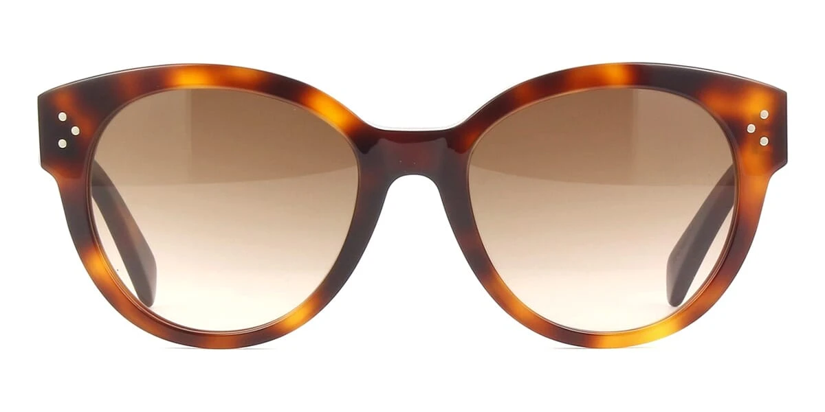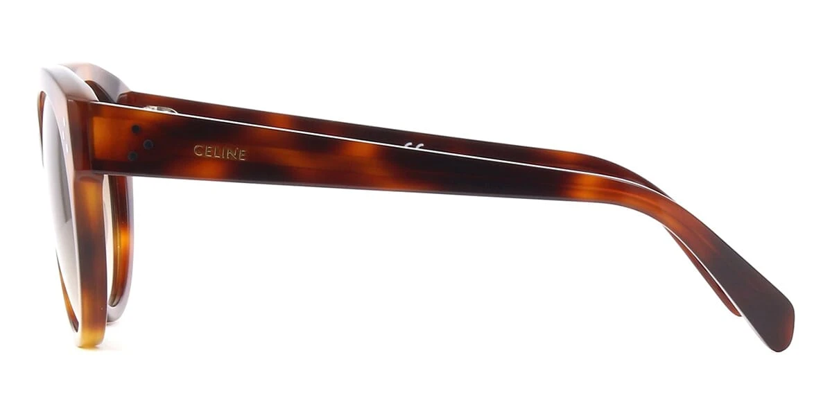 This cat eye Celine sunglass comes in a shiny dark havana frame with brown gradient lenses.