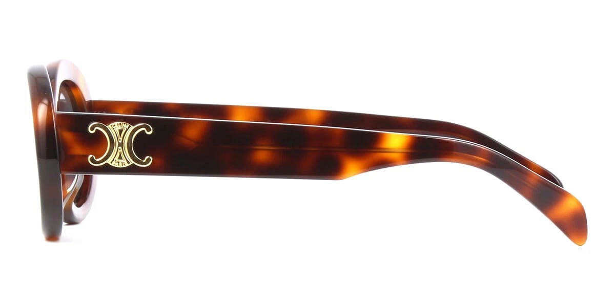 This round Celine sunglass comes in a shiny havana frame with grey lenses.