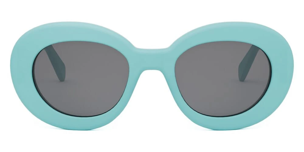 This square Celine sunglass comes in a shiny aqua blue with silver frame with grey lenses.
