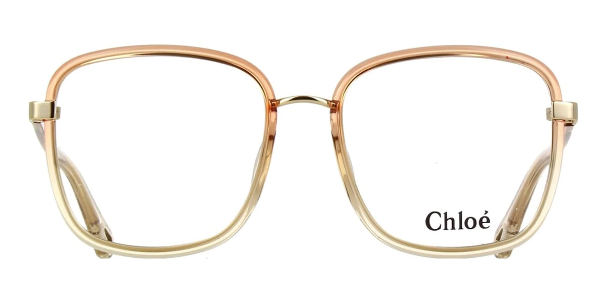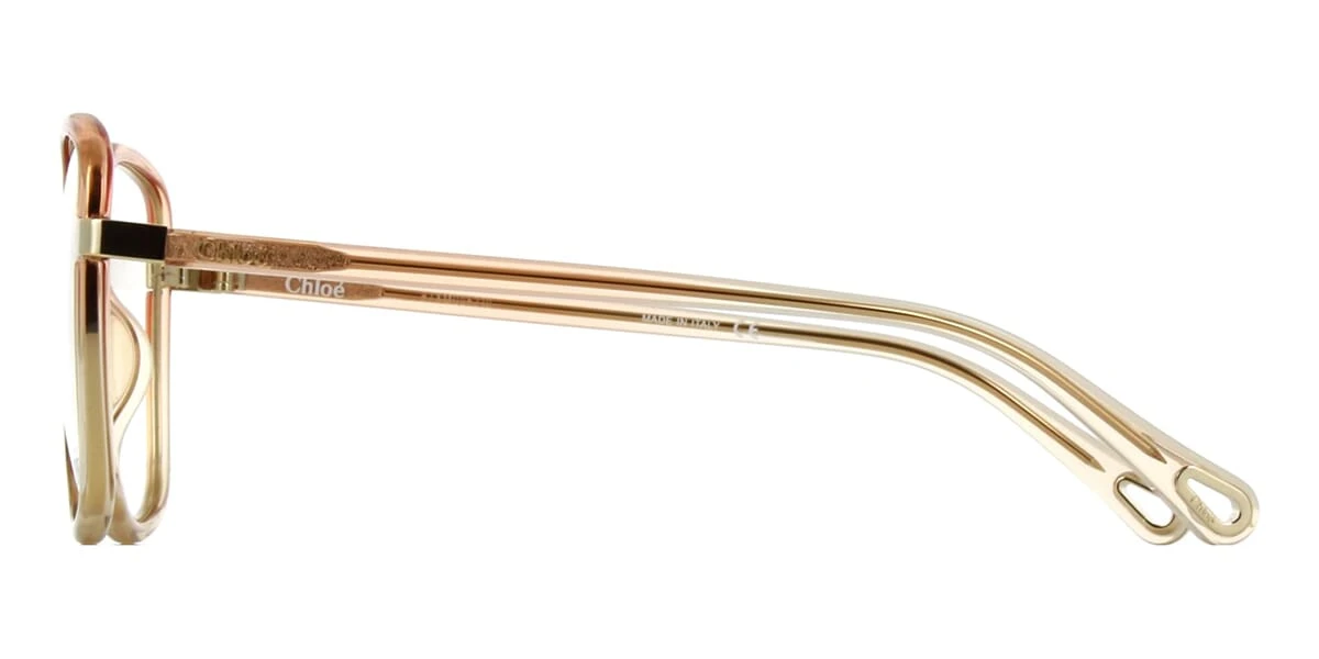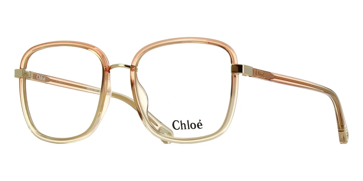 This square Chloe optical comes in a orange crystal fade and gold frame.