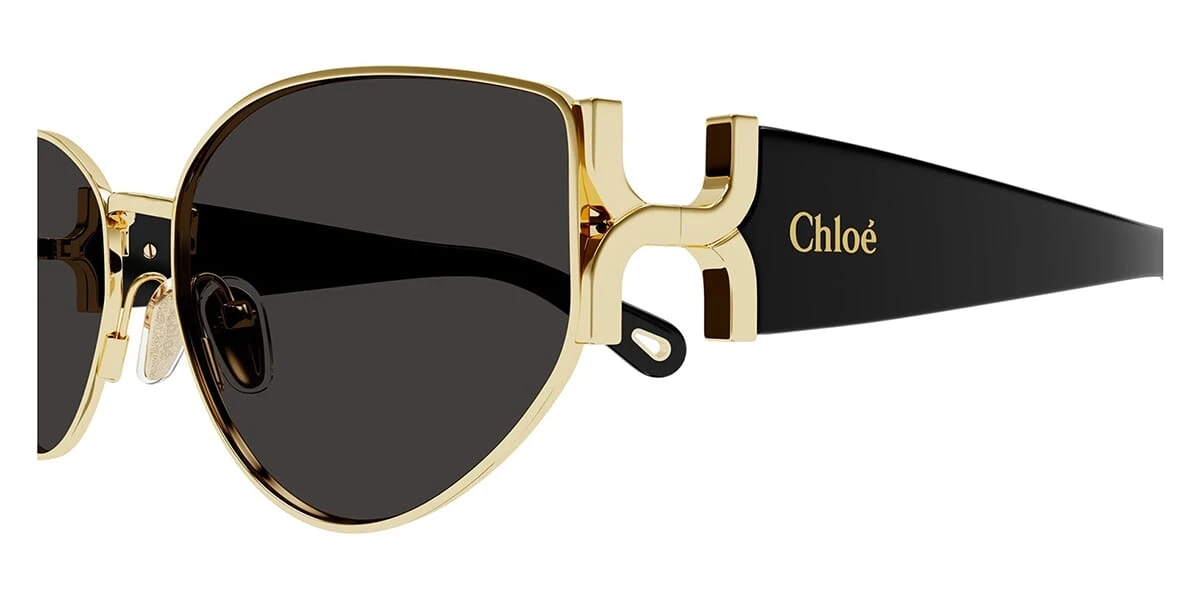 This cat eye Chloe sunglass comes in a shiny gold frame with grey with light mirror lenses.