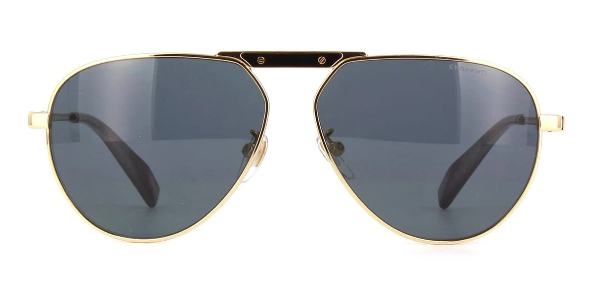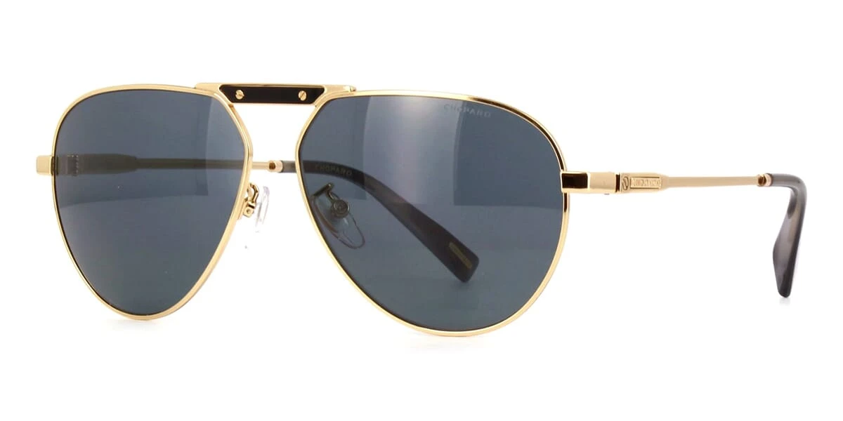 This aviator Chopard sunglass comes in a gold frame with grey lenses.