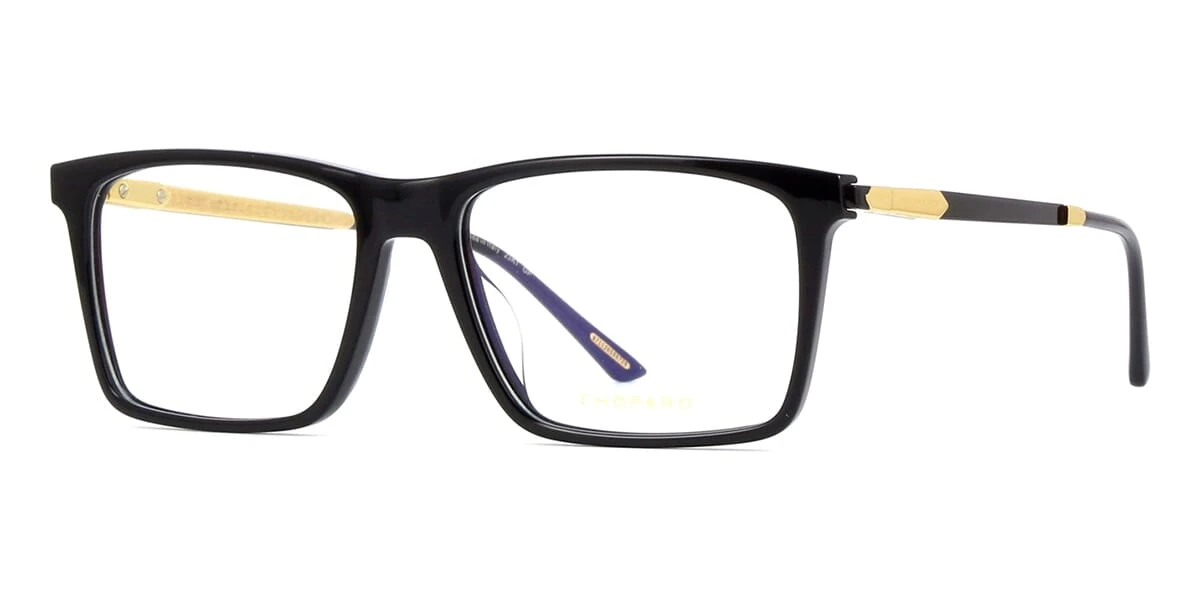 This square Chopard optical comes in a shiny black and gold frame.