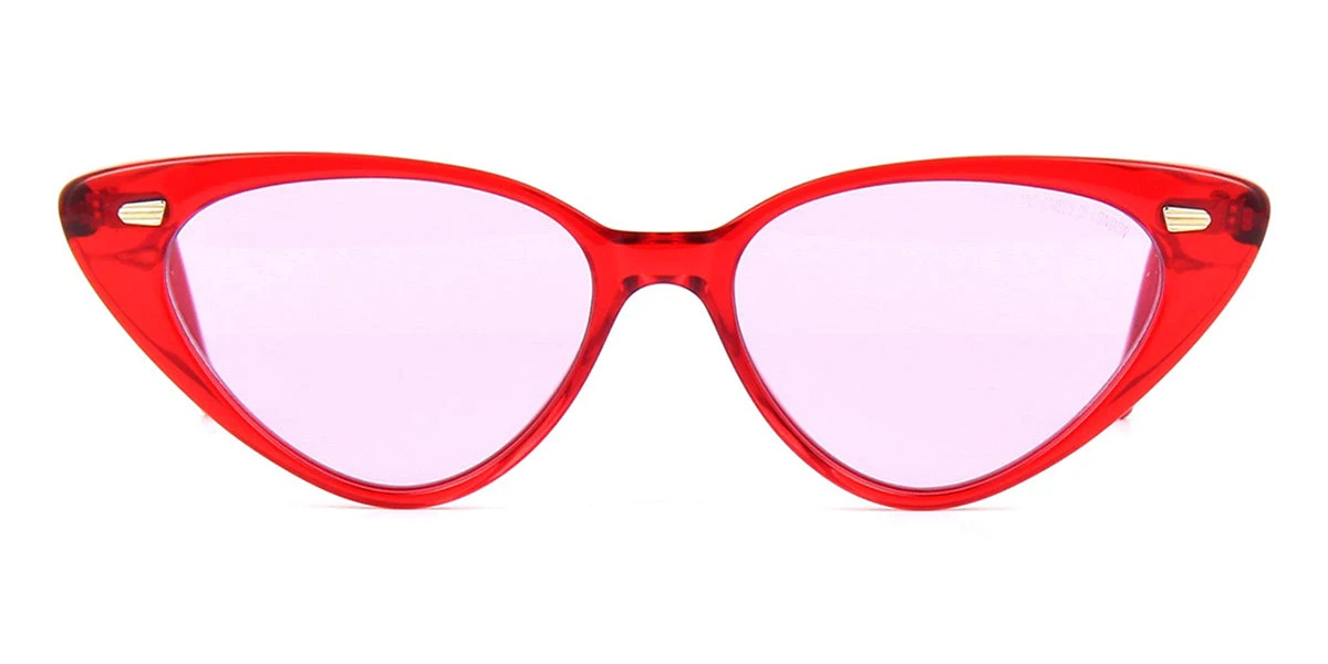 Cat-eye sunglass featuring vintage inspired ribbed pins. Ultra-fine acetate paired with tonal coloured sunglass lenses.