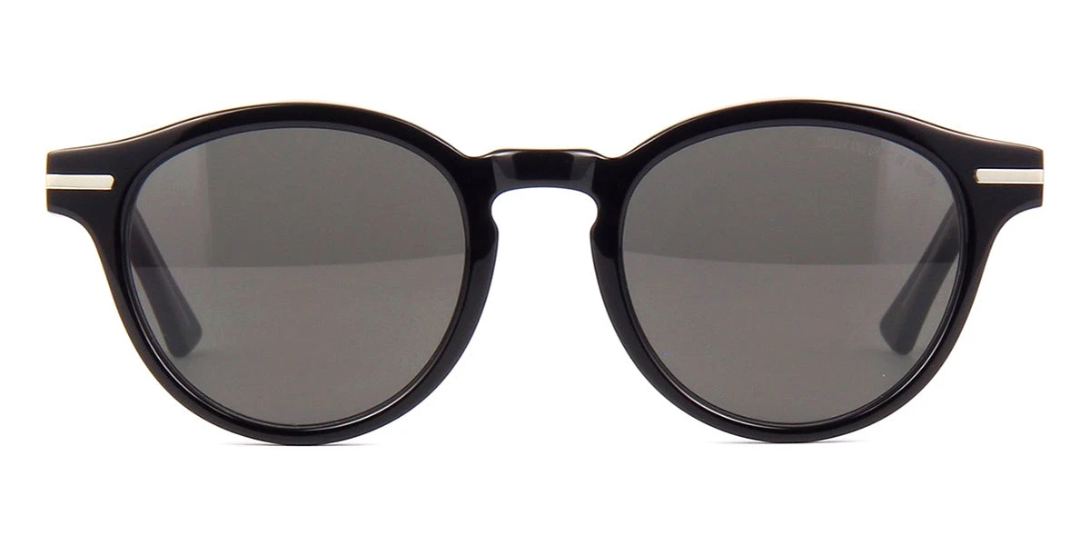 This round Cutler and Gross sunglass comes in a black frame with dark grey lenses.