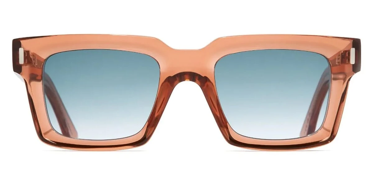 This square Cutler and Gross sunglass comes in a crystal orange brown frame with blue gradient lenses.