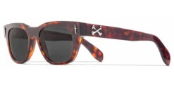 This square Cutler and Gross sunglass comes in a tiger eye havana with 925 sterling silver crossbones frame with dark grey lenses.