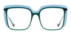 This cat eye Danielle Rattray sunglass comes in a dark khaki frame with dark green lenses.