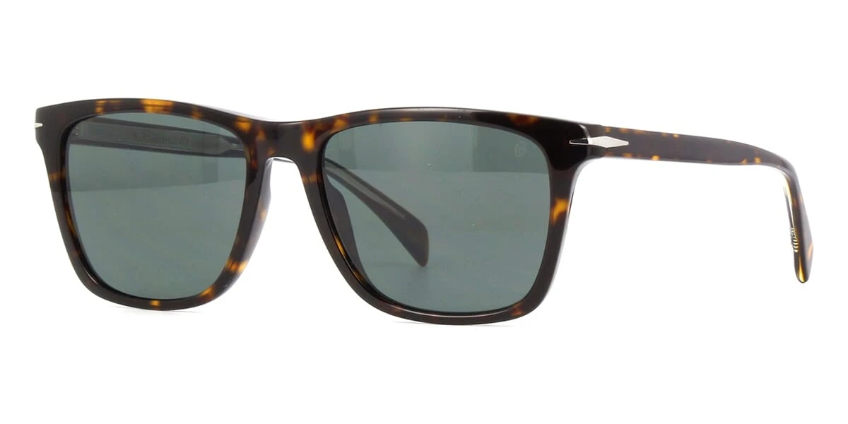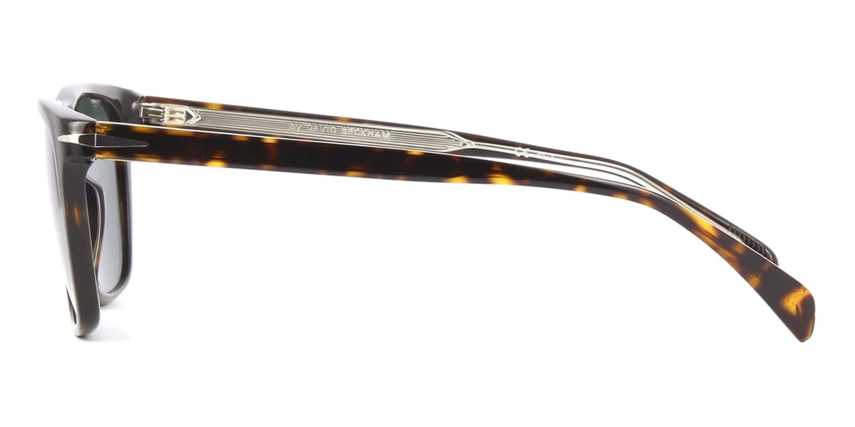This square David Beckham sunglass comes in a shiny dark havana frame with green lenses.