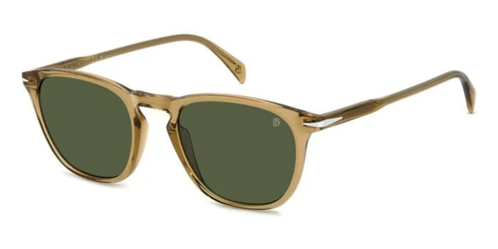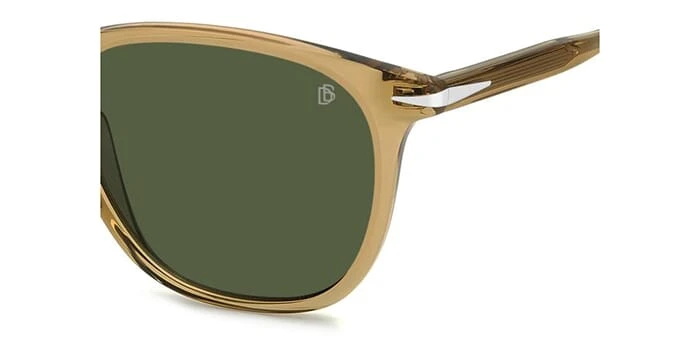 This square David Beckham sunglass comes in a crystal yellow frame with green lenses.