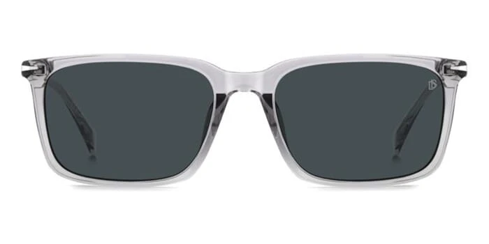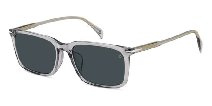This square David Beckham sunglass comes in a crystal grey frame with blue lenses.