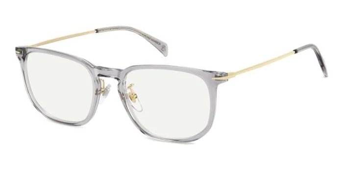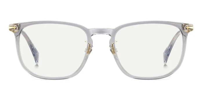 This square David Beckham optical comes in a crystal grey with gold frame.