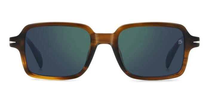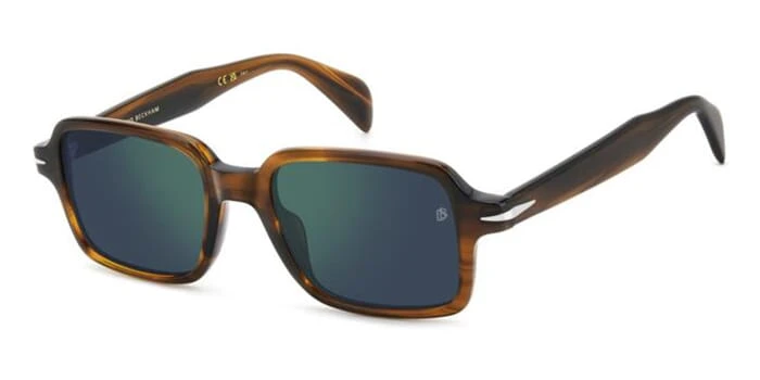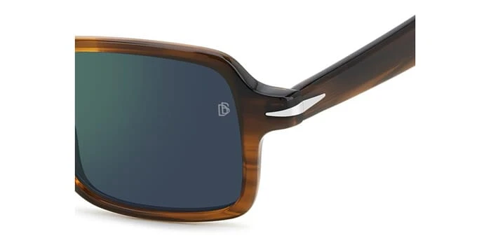 This square David Beckham sunglass comes in a brown horn havana frame with blue with light flash mirror lenses.