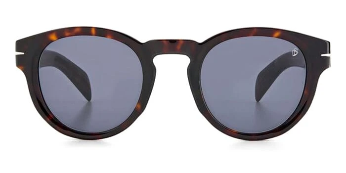 This round David Beckham sunglass comes in a dark havana frame with grey lenses.