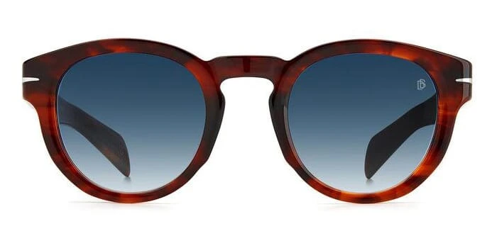 This round David Beckham sunglass comes in a brown with striped havana frame with blue gradient lenses.