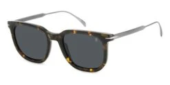 This square David Beckham sunglass comes in a havana with dark ruthenium frame with grey lenses.