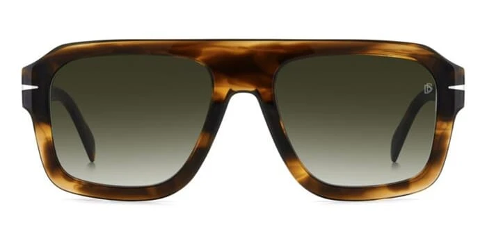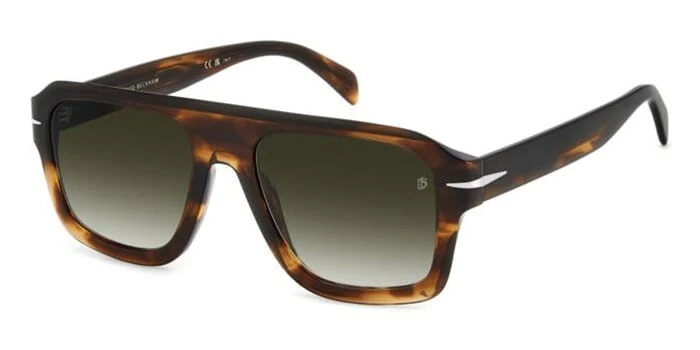 This square David Beckham sunglass comes in a brown horn frame with green gradient lenses.