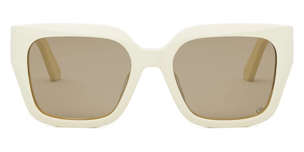 This square Dior sunglass comes in a shiny ivory frame with brown lenses.